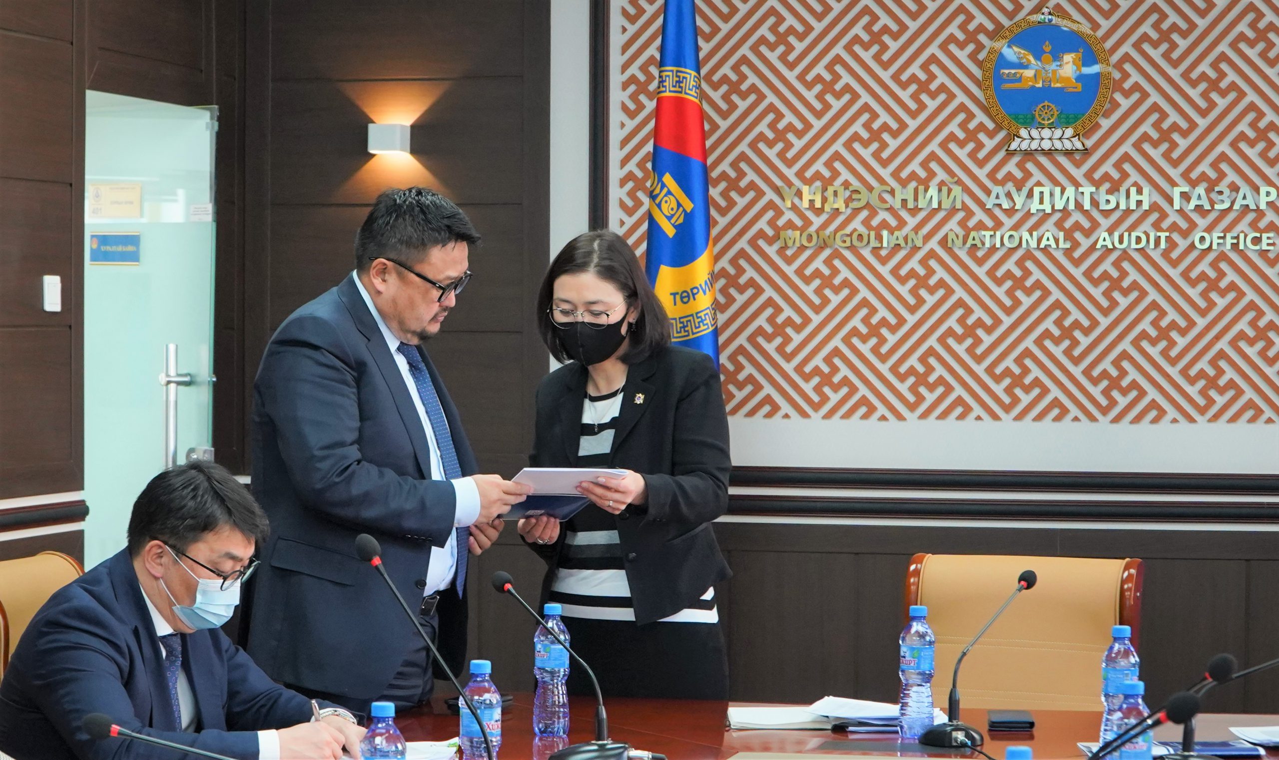 Монгол Улсын Ерөнхий аудиторын орлогч Я.Сарансүх төсвийн ерөнхийлөн захирагчдад 2020 оны санхүүгийн тайлангийн аудитаар тогтоосон төлбөрийн акт, албан шаардлага, зөвлөмжийн хэрэгжилтийн дүгнэлтийг гардуулав. Үүний дараа ҮАГ-ын Аудитын хоёрдугаар газрын захирал, тэргүүлэх аудитор Ц.Наранчимэг танилцуулга хийлээ.
