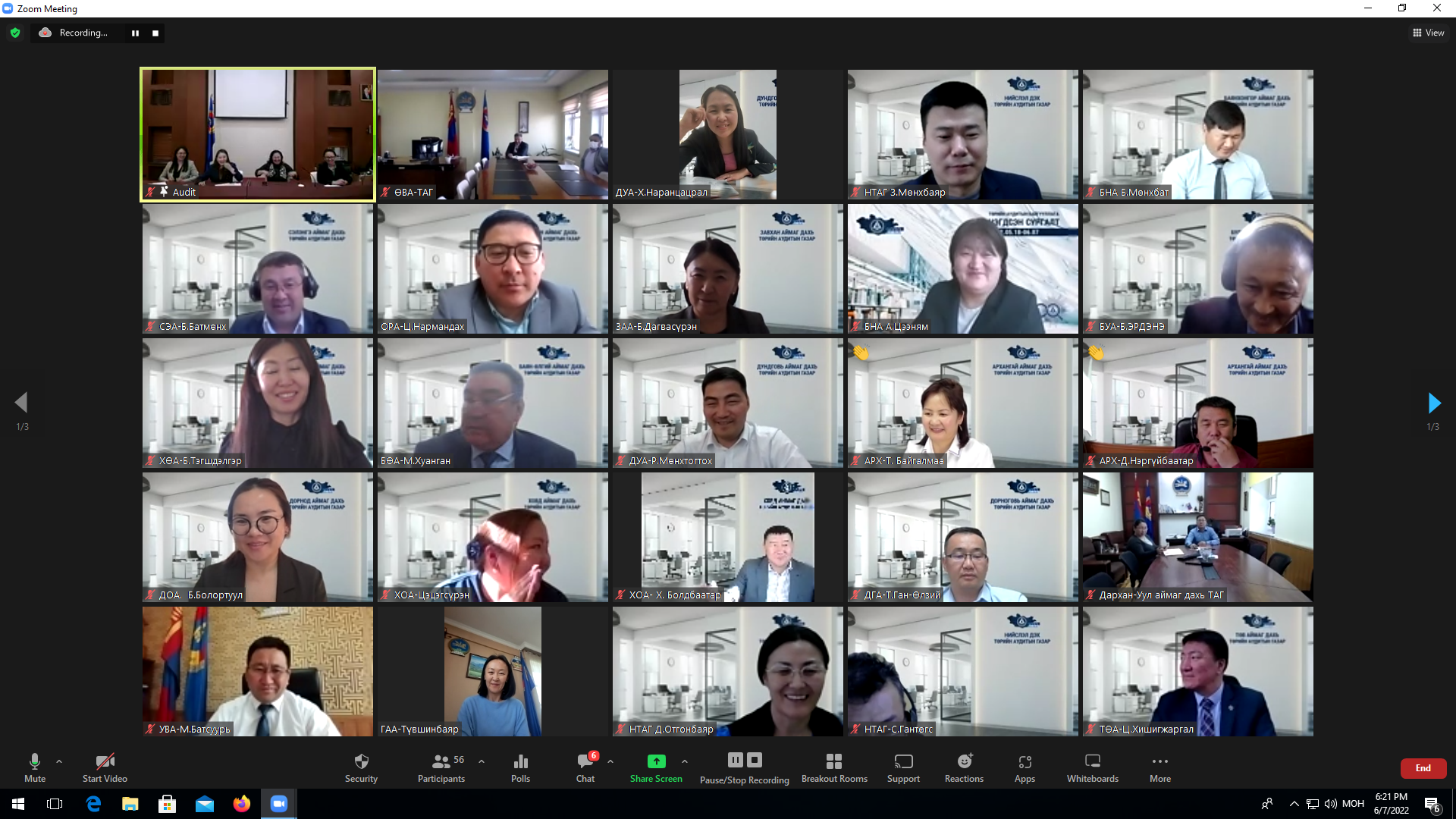 Төрийн аудитын байгууллагын нийт албан хаагчдын чадавхыг бэхжүүлэх, аудитын чанарын үр нөлөөг сайжруулах зорилгоор “Нэгдсэн сургалт -2022” цахим арга хэмжээг 2022 оны 05 дугаар сарын 18-ны өдрөөс 06 дугаар сарын 07-ны өдрийн хооронд аймаг, нийслэл дэх Төрийн аудитын газрын 280 гаруй албан хаагчийг хамруулан зохион байгууллаа.