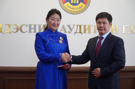 Монгол Улсын Ерөнхийлөгчийн зарлигаар Хөдөлмөрийн гавьяаны улаан тугийн одонгоор Төв аймаг дахь Төрийн аудитын газрын аудитор Г.Баянжаргал, Д.Бямбасүрэн нарыг шагнасныг гардуулан өглөө.