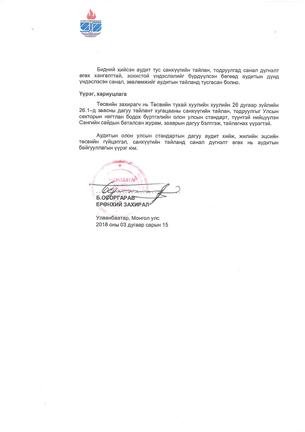 Аудитын хуулийн этгээд сонгон шалгаруулалт